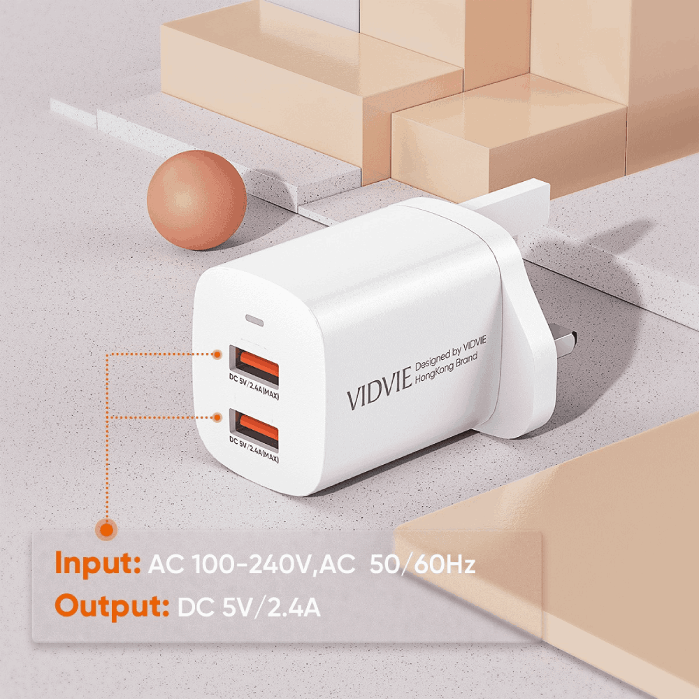VIDVIE Dual USB Fast Charger PLB150